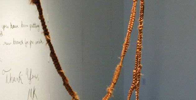 For the 2008 Whitney Biennial MK Guth creates an interactive sculpture engaging the audience in an exchanged based experience. The sculpture will be a large Rapunzel like braid that will be made with the help of the gallery and public audience. Participants will be asked a question and requested to write their response on a piece of flannel fabric that will be woven into an ever growing braid.